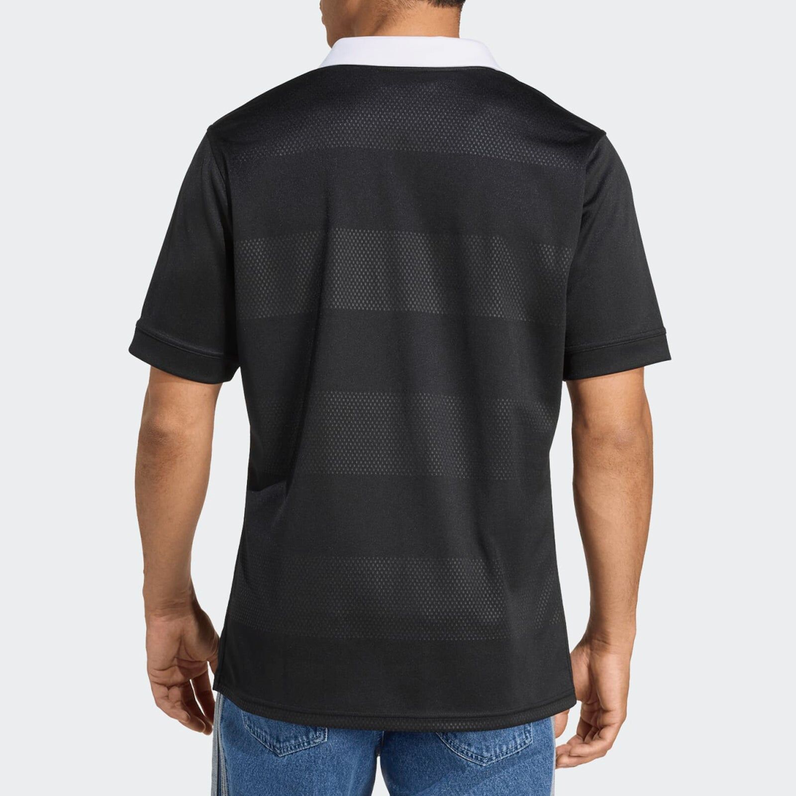 Shout for the mighty All Blacks in a supporter-focused version of their legendary home shirt. Built from piqué fabric that's both soft to the touch and tough as nails, this adidas rugby jersey is equally suited to on-field play and off-pitch celebrations. Tonal hoops, a crisp white collar and a silver fern badge come together to create a look loyal fans are sure to treasure.