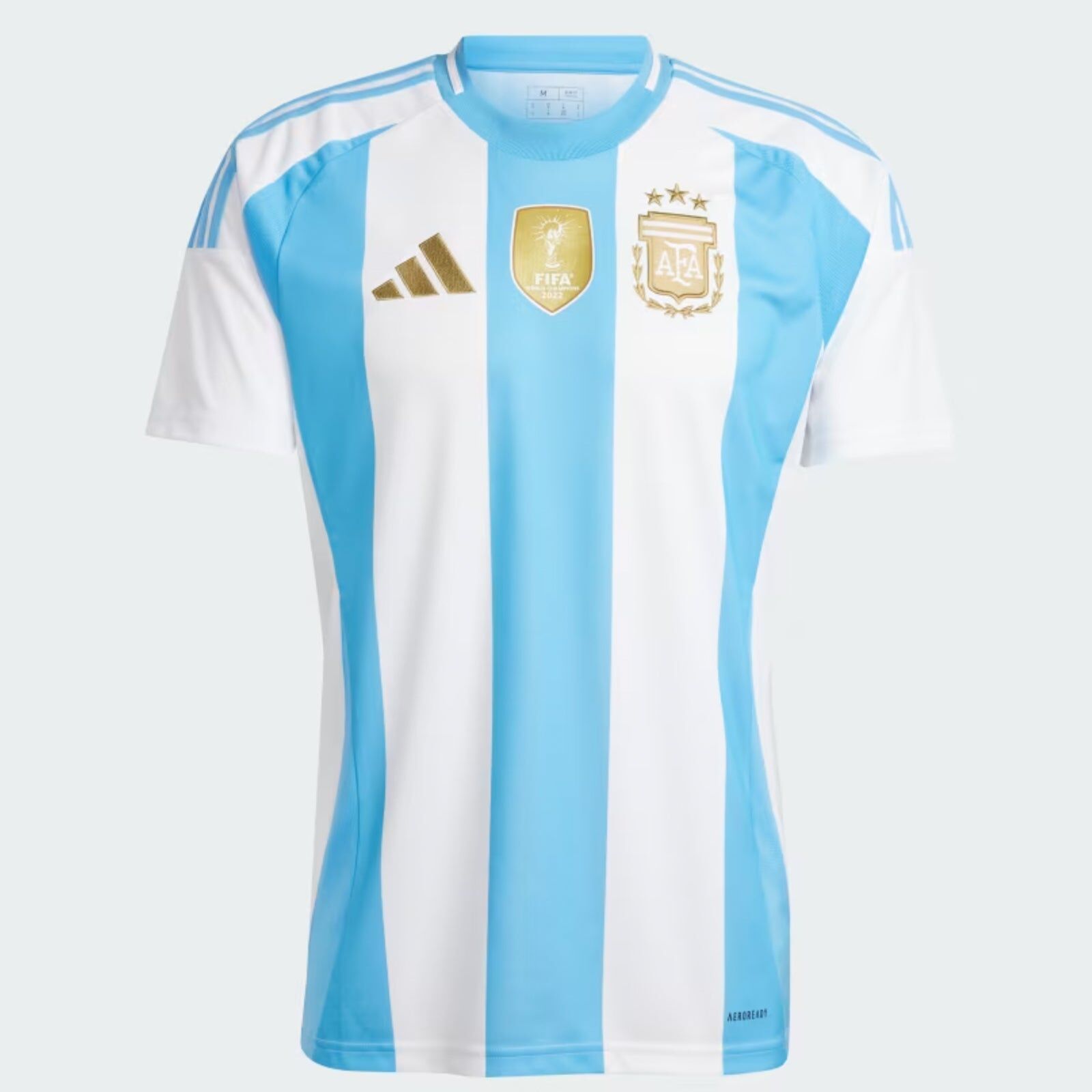 A classic look for the world champions. From those famous stripes to its Sun of May sign-off, this adidas shirt rewards loyal fans with all the elements you'd want to see in a traditional Argentina home jersey. Those gold accents and three stars are extras in honour of that famous win in Qatar. Built for fan comfort and pride, it features moisture-managing AEROREADY and an embroidered badge packed with football passion. This product is made with 100% recycled materials. By reusing materials that have already been created, we help to reduce waste and our reliance on finite resources and reduce the footprint of the products we make.