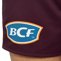 TheBRISBANE BRONCOS REPLICA HOME SHORT is made from a lightweight polyester ripstop fabric. It features club colour stripes on the leg panels with sublimated club logos and sponsors. Lightweight and breathable but rugged enough for contact training.rawcord.