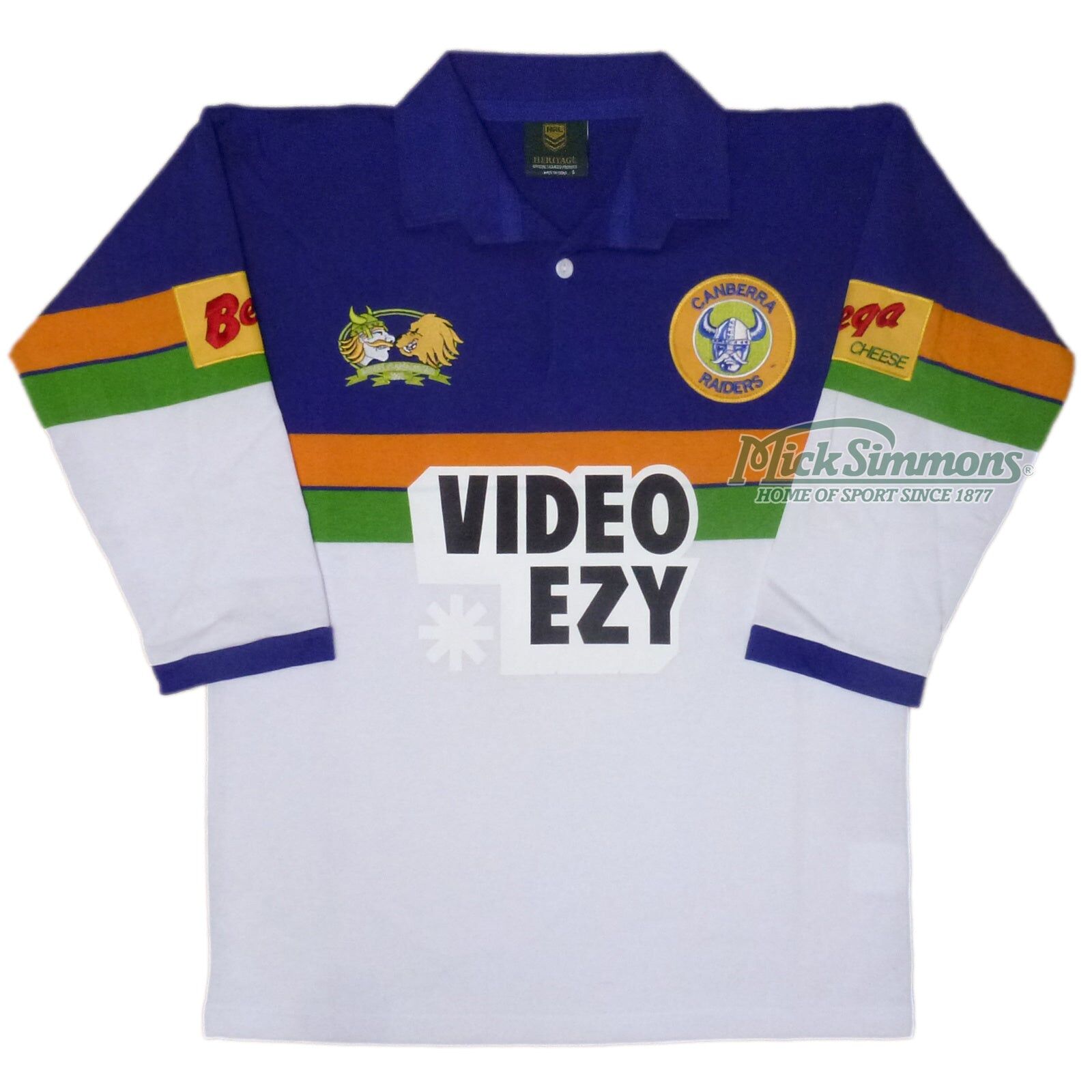 This jersey features an embroidered Canberra Raiders emblem and sublimated VideoEzy sponsor. In 1990 Mal Meninga captained the Raiders to the premiership, defeating Penrith 18-14 in the grand final. The Raiders coached by Tim Sheens, dominated the season not only taking the trophy but also finishing the season as minor premiers with Mal Maninga taking the title of top try scorer and top point scorer.