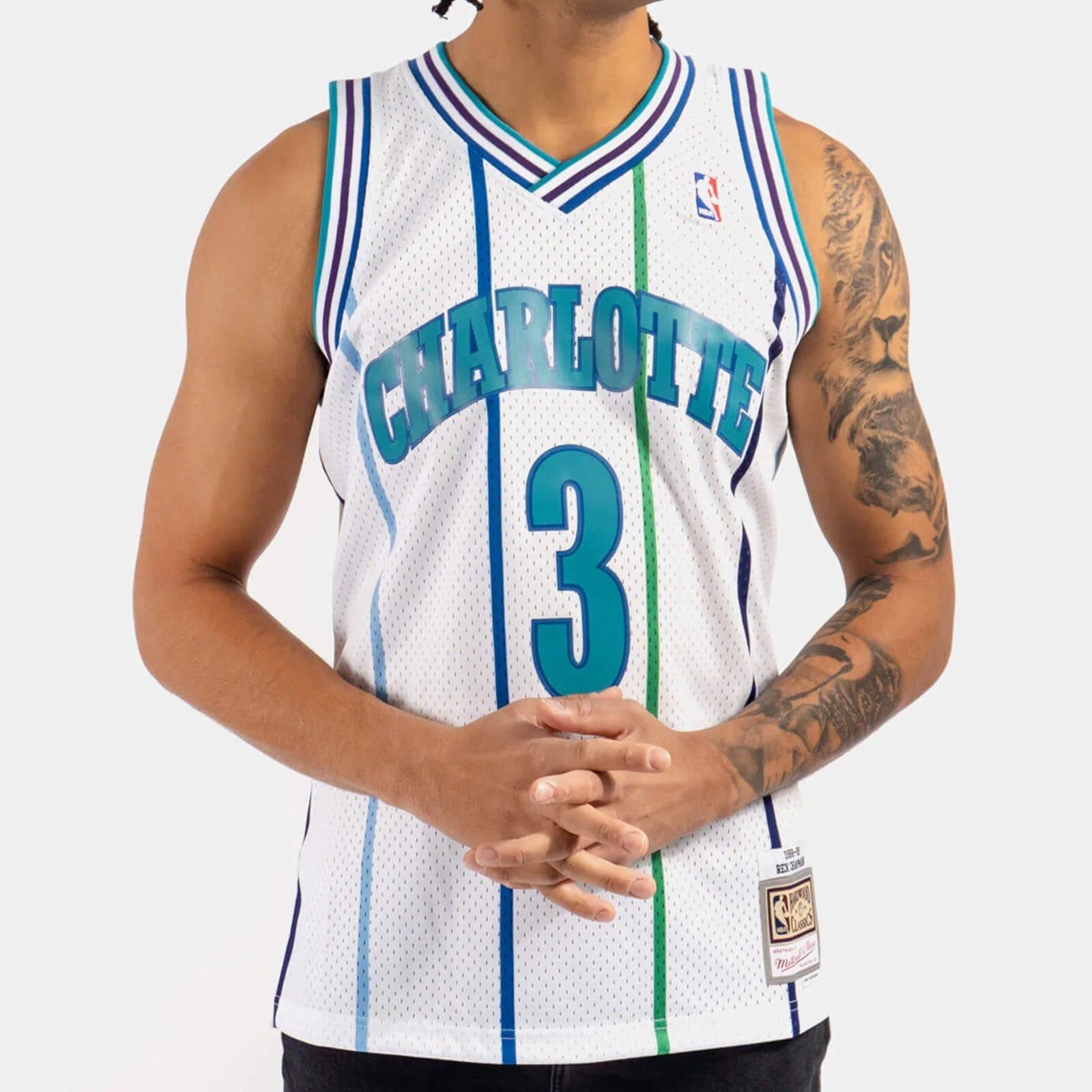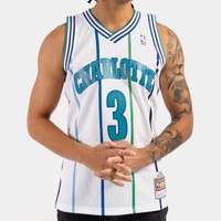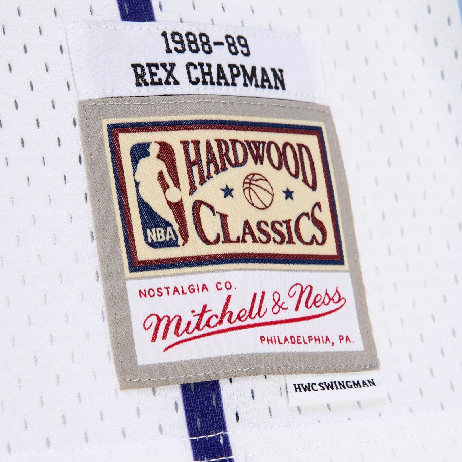 Inspired by the jerseys worn by the legends of the NBA, this NBA Hardwood Classic White Swingman jersey is constructed to resemble the way Rex Chapman wore his home white jersey during the 1988-1989 season with the Charlotte Hornets. Whether it’s playing an evening pickup game or wearing to your favorite team’s next matchup, this jersey is crafted with a wearable everyday fit, featuring heat pressed screen-printed twill embellishments and a mesh body for breathability throughout activity. This jersey is sized for men; women may need to size down accordingly based on length and fit.