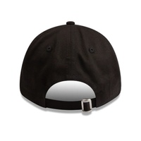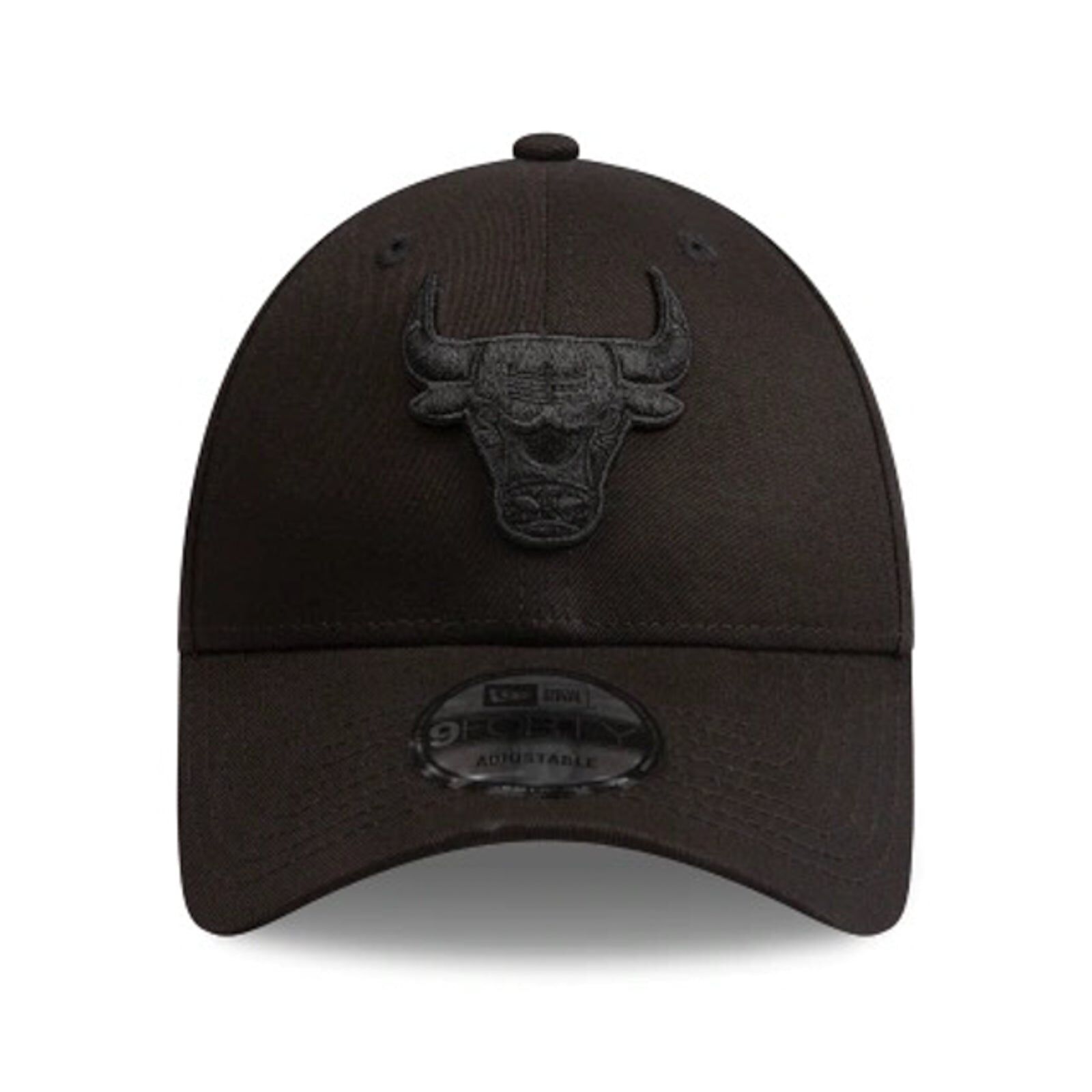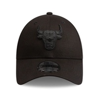 Chicago Bulls 9FORTY cap features a black crown with a raised Chicago Bulls black logo embroidered on the front. The cap also has an adjustable cloth strap with metal buckle at the back.