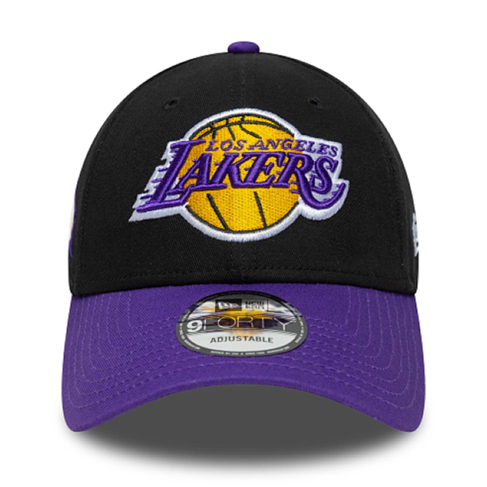 Support the Los Angeles Lakers with the 9FORTY Side Patch Cap by New Era. This adjustable cap features a raised Lakers logo embroidered on the front and the New Era flag on the left side for authentic team style. The classic 9FORTY silhouette with a strapback closure ensures a comfortable, customizable fit for most head sizes. Crafted for fans who want to show their Lakers pride with every wear, this black cap combines official NBA design with everyday comfort.