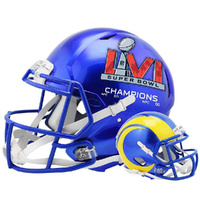 This LIMITED EDITION New for 2022 helmet features the winning team’s shell and facemask with the official NFL Super Bowl LVI logo decal on the left side of the helmet and the winning team’s standard decal on the right side of the helmet.