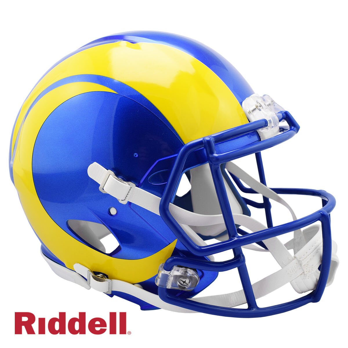 • The most popular on-field helmet design is now offered as a Replica display helmet. Medium size Speed shell, with the same facemask and 4-point chinstrap as the authentic version. Includes a non-wear plate and molded foam jaw pads.