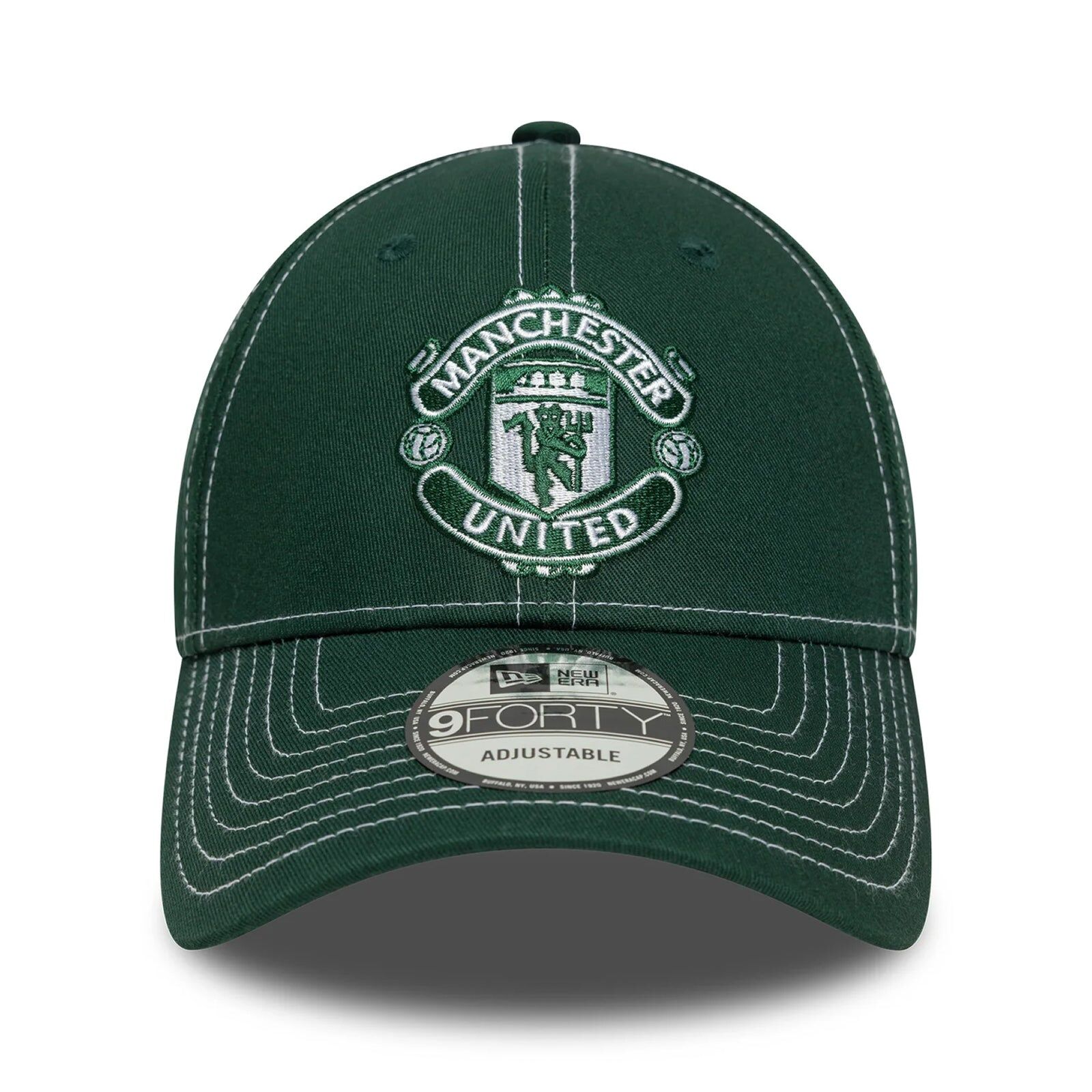 Show your support for Manchester United with the New Era 9FORTY Contrast Stitch Cap. Its royal green color and white stitching highlight the iconic club badge, making it a standout accessory for any fan. The adjustable strap ensures a comfortable fit for all, so you can wear your pride with ease at every match or casual outing.