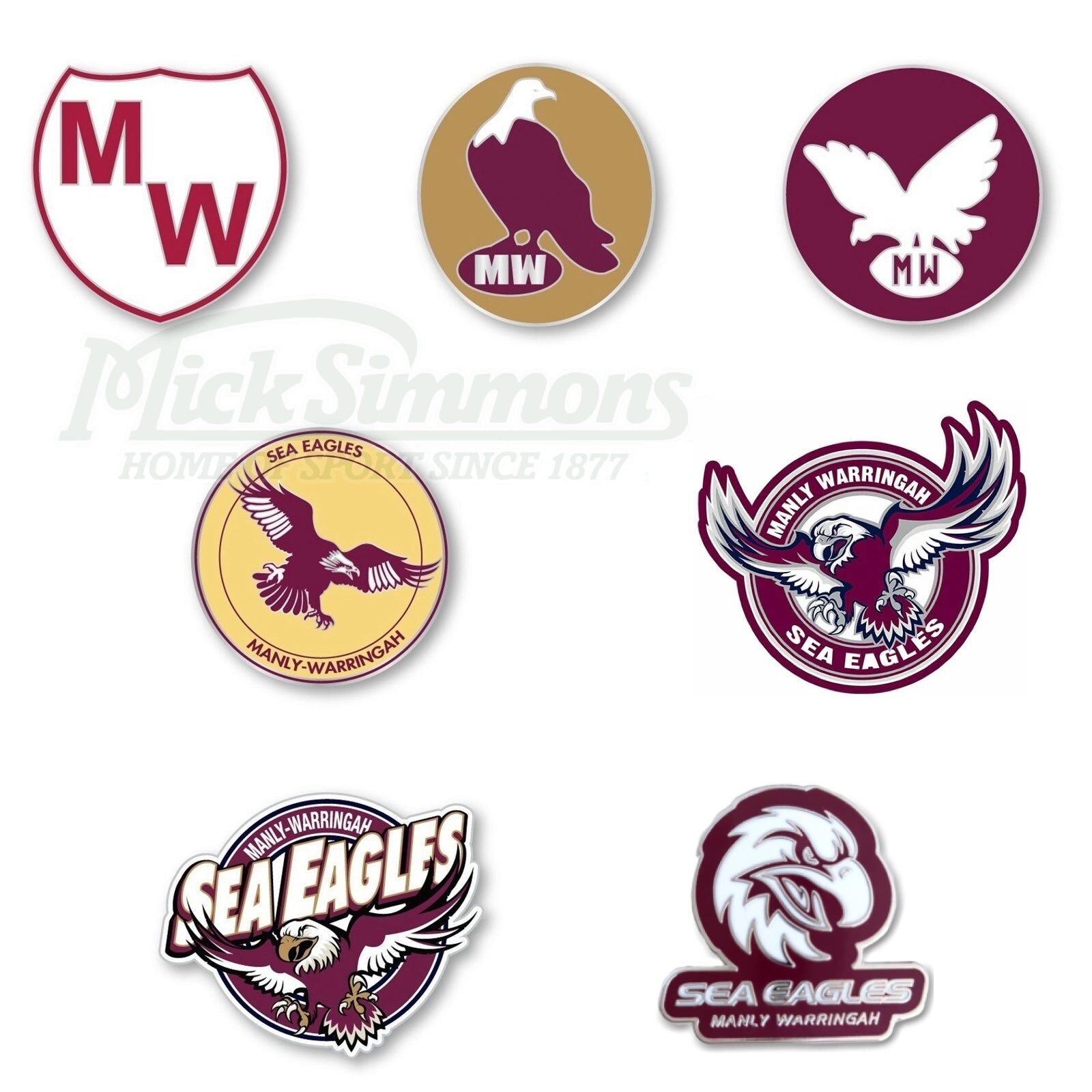 Manly Warringah Sea Eagles NRL Evolution Series Collection Set Team Metal Logo Pin Badge