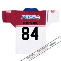 This jersey features an embroidered Manly emblem and sublimated Pepsi sponsor. This jersey celebrated the club's 50th anniversary, and fittingly saw the Sea Eagles claim their sixth premiership. The ARL in 1996 consisted of 20 teams and Manly was able to dominate both the regular season and the finals. The team was coached by Bob Fulton and captained by Geoff Toovey.