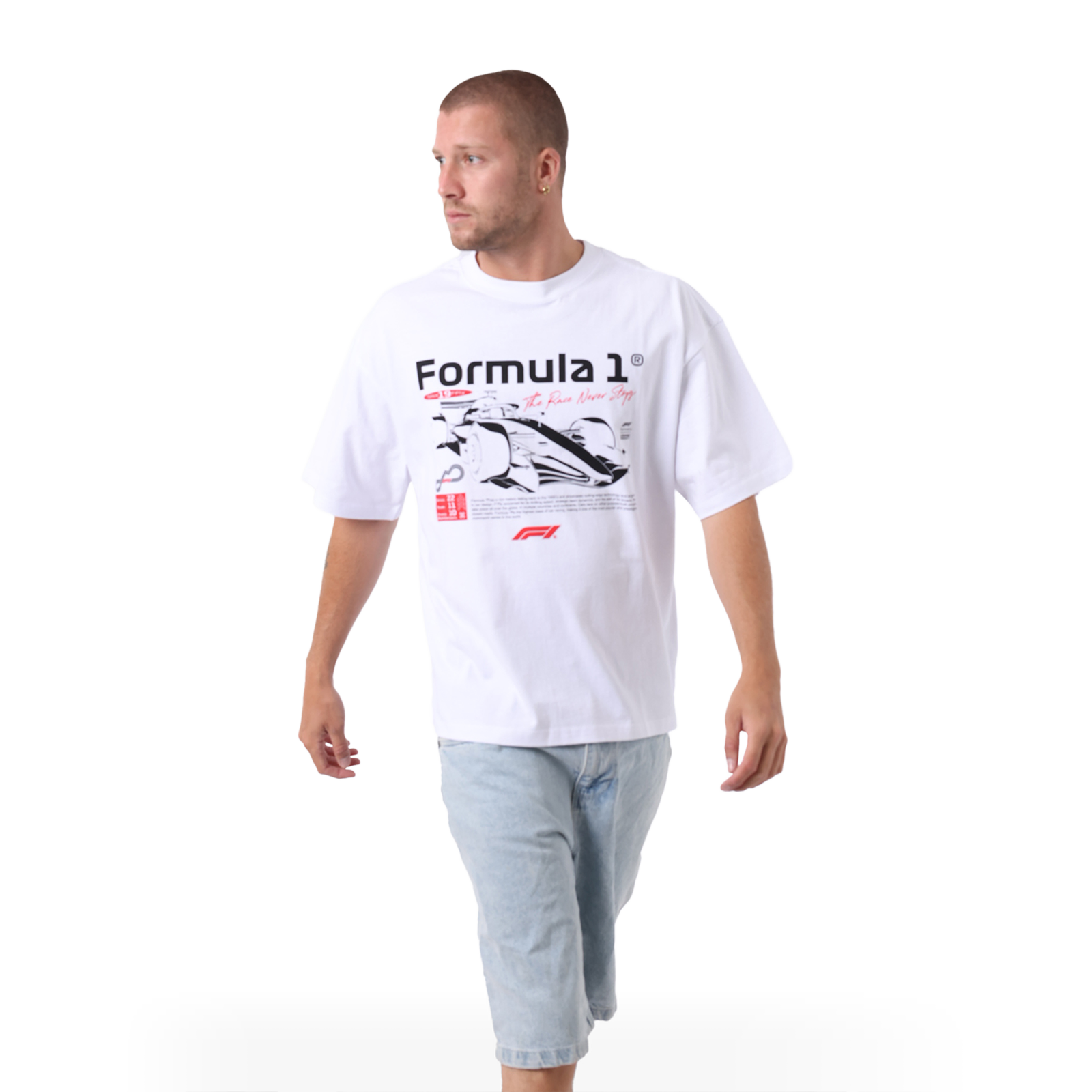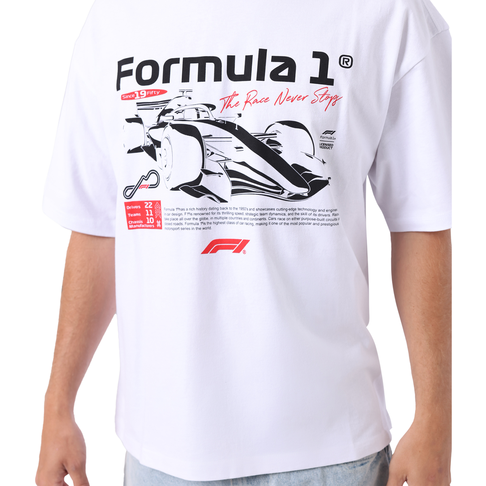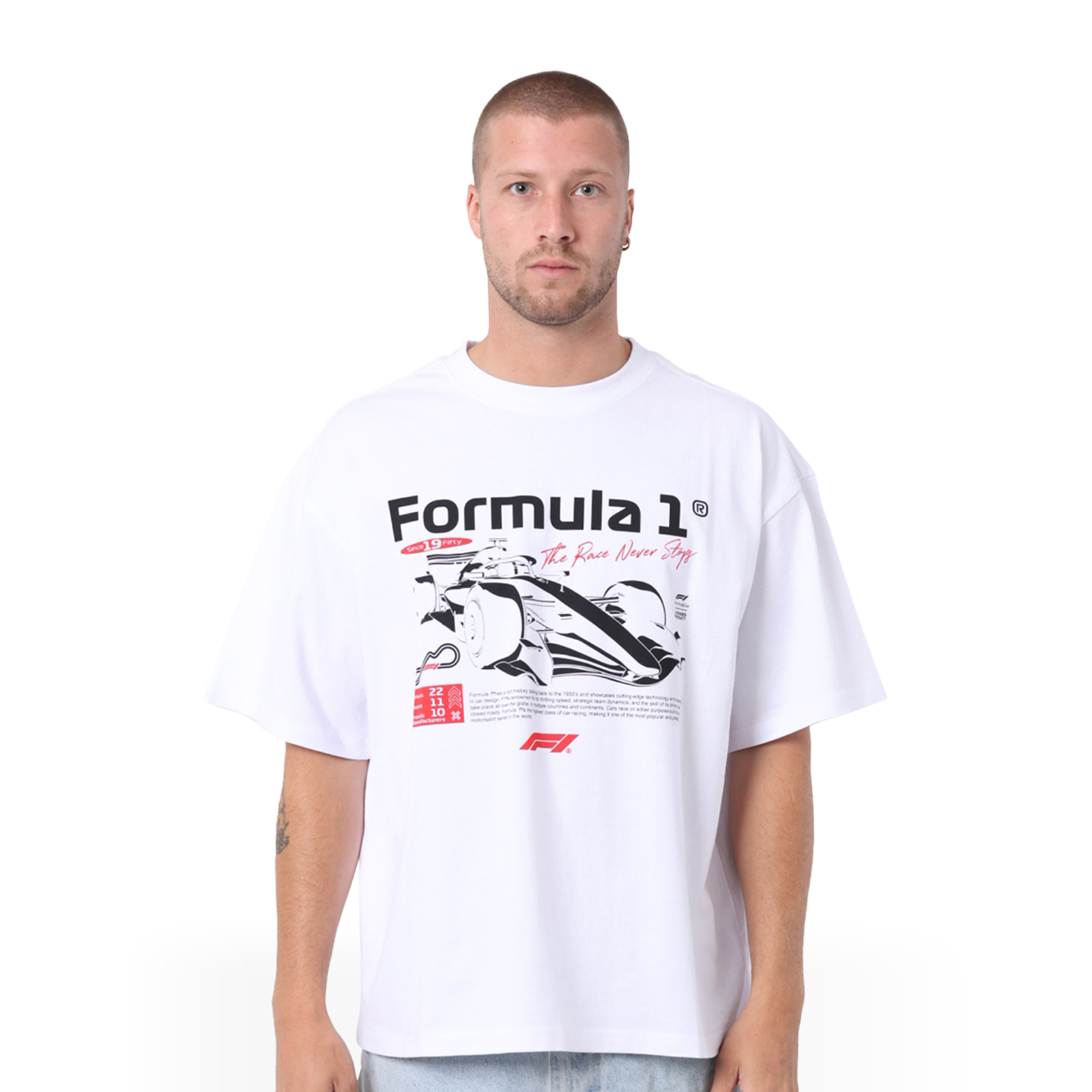 • Bold F1-inspired graphic print on front