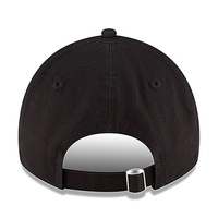 NBA LOGOMAN 9TWENTY Hat features a black crown with a raised Chicago Bulls black logo embroidered on the front. The cap also has an adjustable  strap with metal buckle at the back.