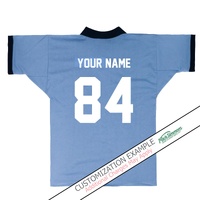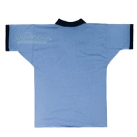 • Light blue jersey with contrast navy sleeve trim and collar