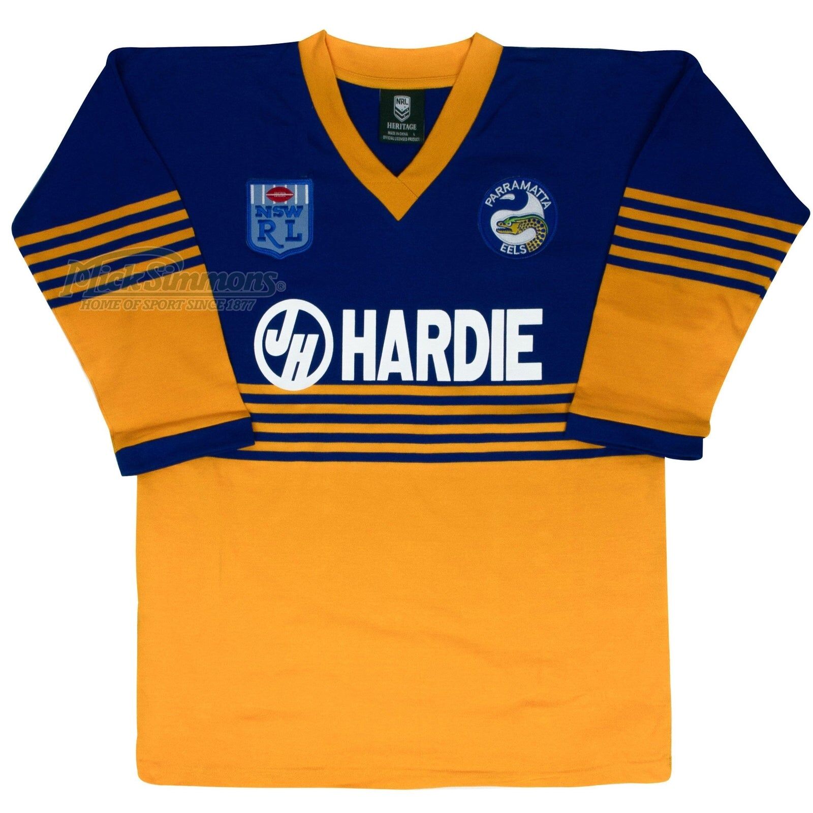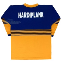 This jersey features an embroidered Eels emblem and sublimated Hardie sponsor. An iconic jersey from the Eels' glory days of the 1980s. In 1986 the mighty Eels finished top of the ladder with 16 wins thanks to legends such as Mick Cronin, Steve Ella, Brett Kenny, Eric Grothe and Peter Sterling. They went on to the finals by crushing the Bulldogs in the semis, and narrowly defeating them again in a heart stopping grand final in front of 46000 fans at the Sydney Cricket Ground. This Jersey is a very iconic piece of NSWRL and Eels history.