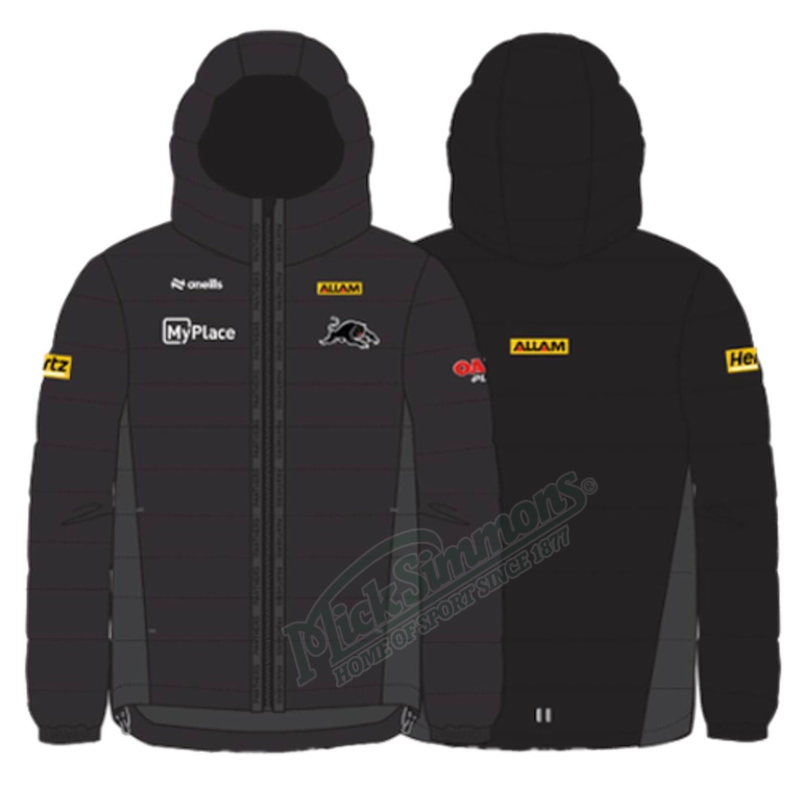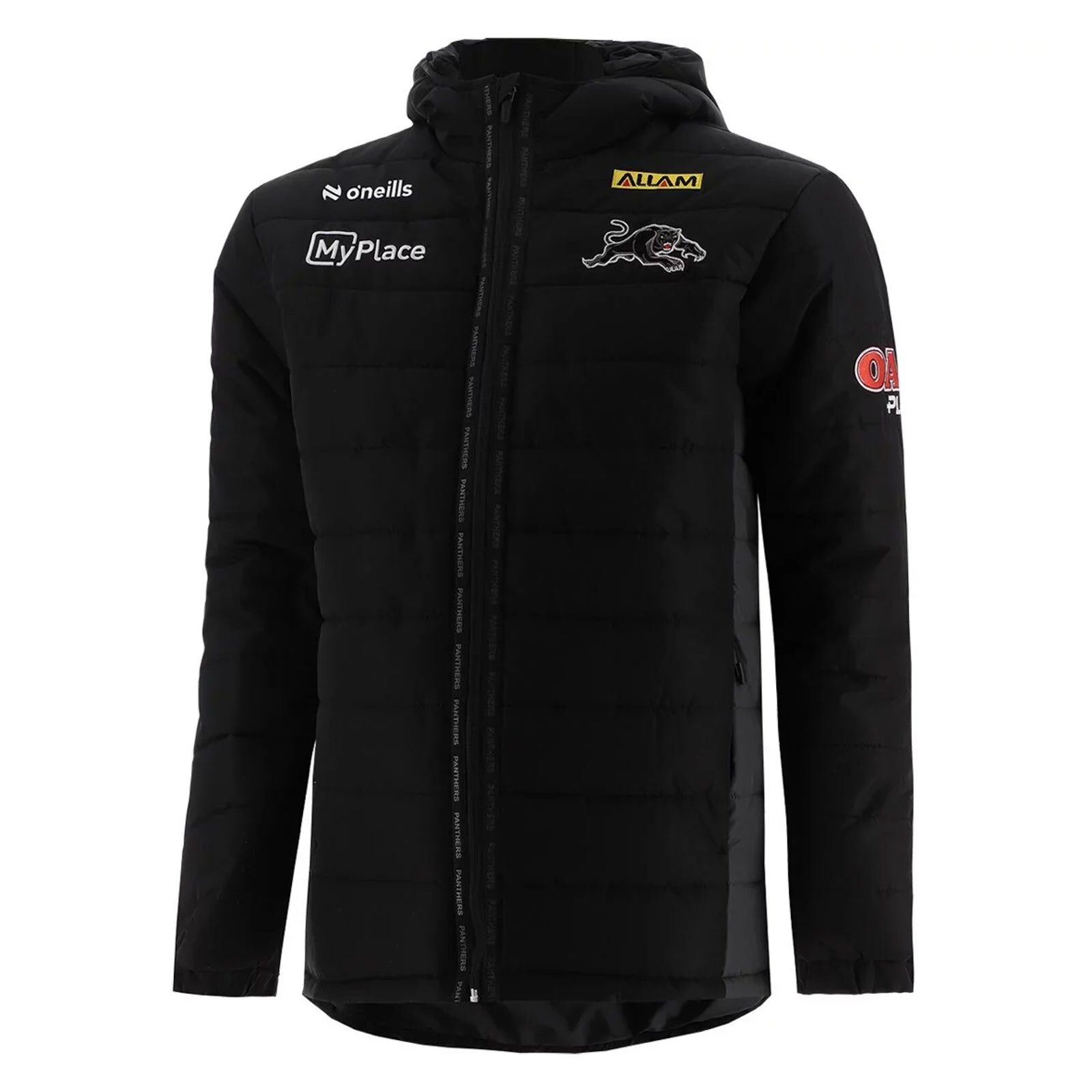 Stay warm and show your support for the Penrith Panthers with this official 2025 hooded padded jacket by O'Neills. Perfect for chilly game days or everyday wear, this jacket features the iconic Panthers logo and is made with high-quality materials for durability and comfort. Go Panthers!