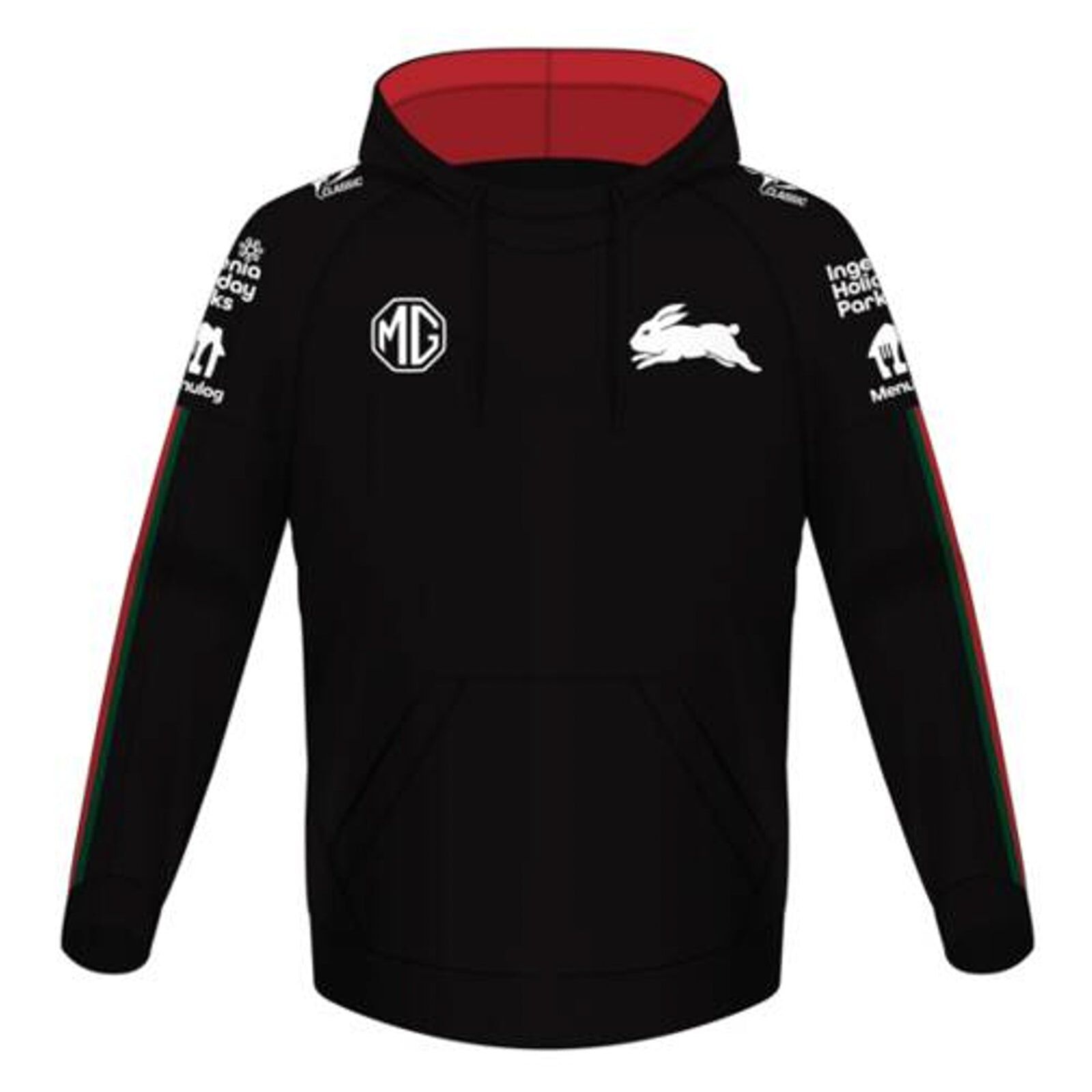 • Kangaroo pockets. Rabbitohs badge and embroidered logos.