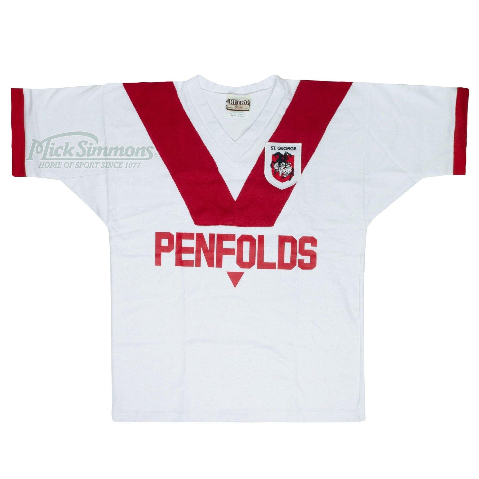 This jersey features an embroidered Dragons logo and a sublimated Penfolds sponsor. The Dragons dominated in 1979, winning the minor premiership with 17 wins on the way to a grand final facing the Bulldogs, and their 15th title. The Dragons are one of Sydney's foremost clubs, with hundreds of thousands of loyal supporters across NSW.