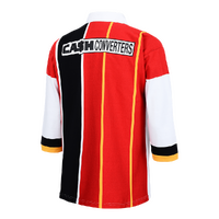 Introducing the WESTERN REDS SEVENS NRL Vintage Retro Heritage Rugby League Jersey Guernsey, a bold and unique way to showcase your love for Rugby League! Featuring a striking red and black design with gold accents, this jersey is perfect for fast-paced, abbreviated formats. The "Cash Converters" sponsorship logo and Western Reds' emblem add to its authenticity.